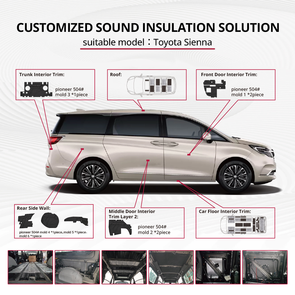 | বিশেষভাবে তুলে ধরা: | Full-Car Noise Reduction Toyota Sienna sound insulation,Premium Pioneer Materials Sienna car quiet kit,Perfect Fit for Sienna Customized sound insulation solution |